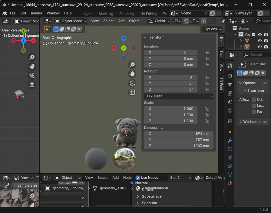 造形にはまだ納得いきませんが、とりあえずこのまま3Dフィギア化に進めます。