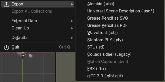 GLBファイルをblendarにインポートし、対応している形式にエクスポートしていきます。