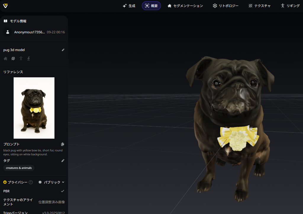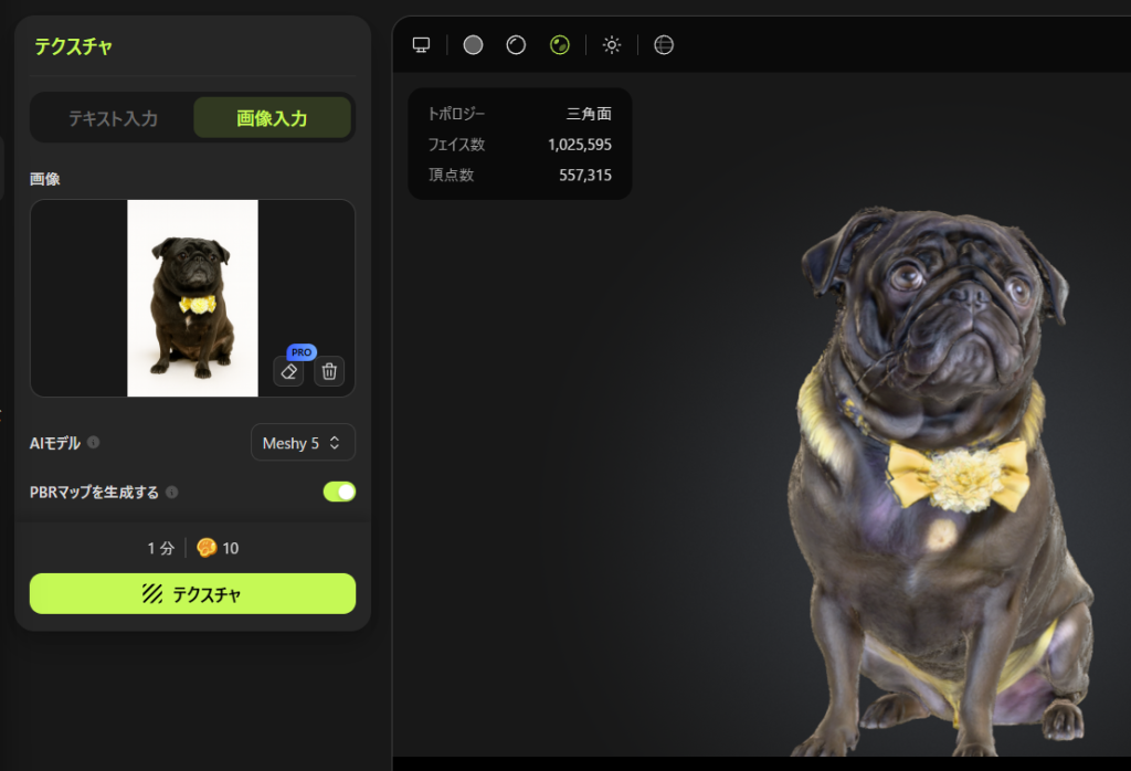 続いてMeshy.aiというサイト。造形は先ほどよりリアル感がある。